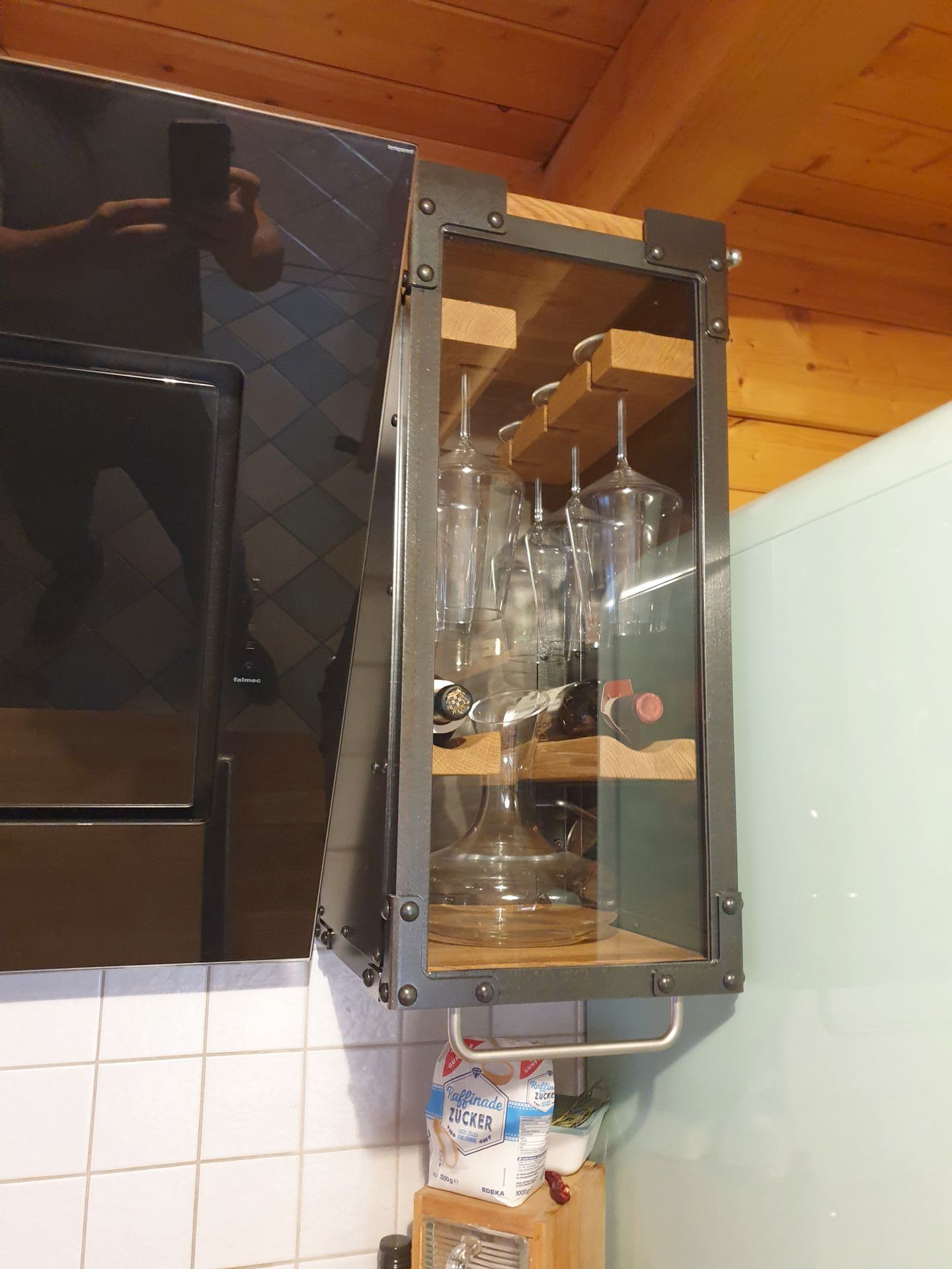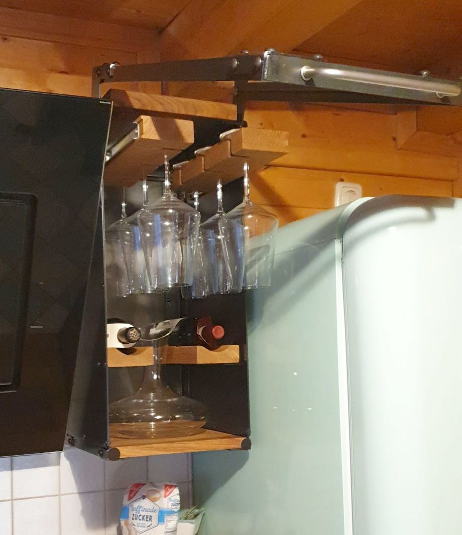 Ein besonderes Highlight bildet das zusätzliche Weinregal mit verglaster Flügeltüre!