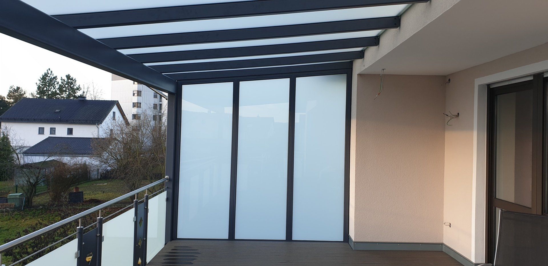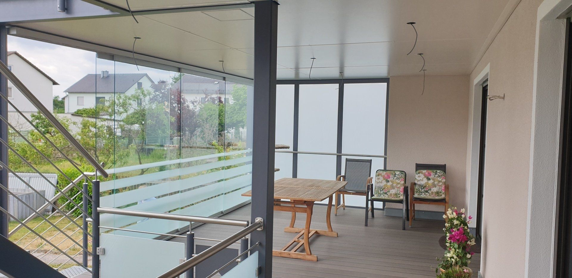 Balkonkonstruktion mit verfahrbarer Überdachung