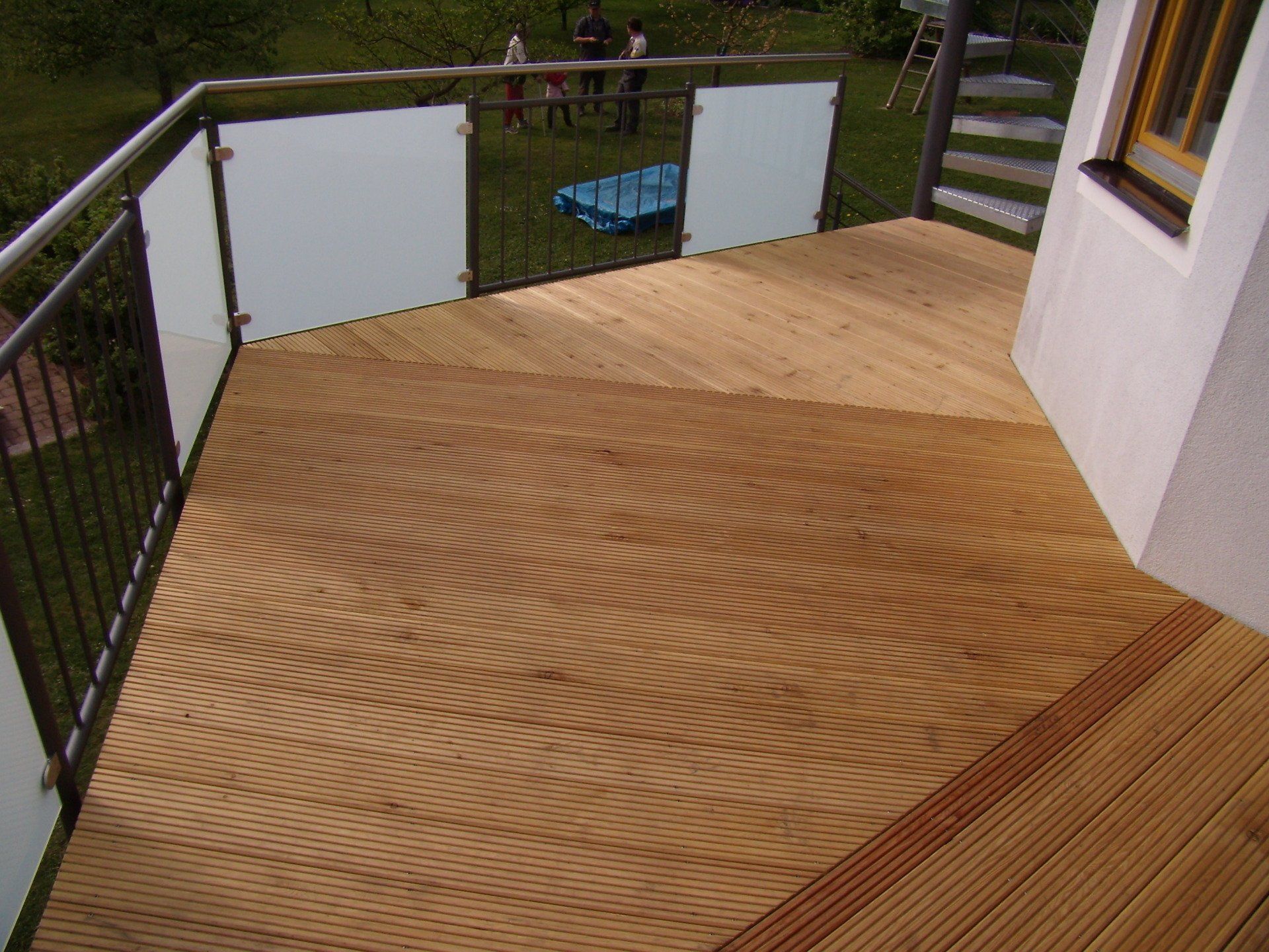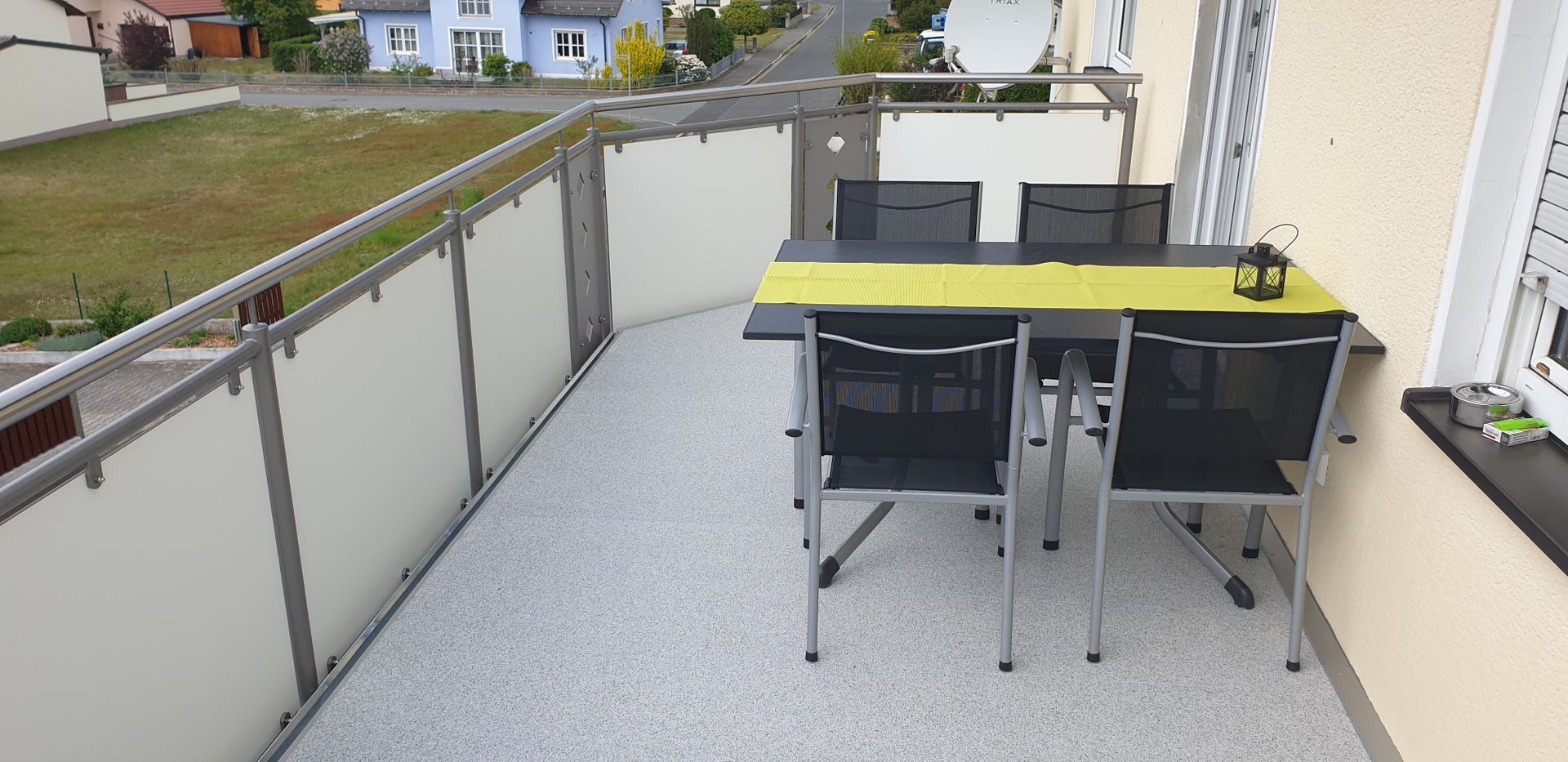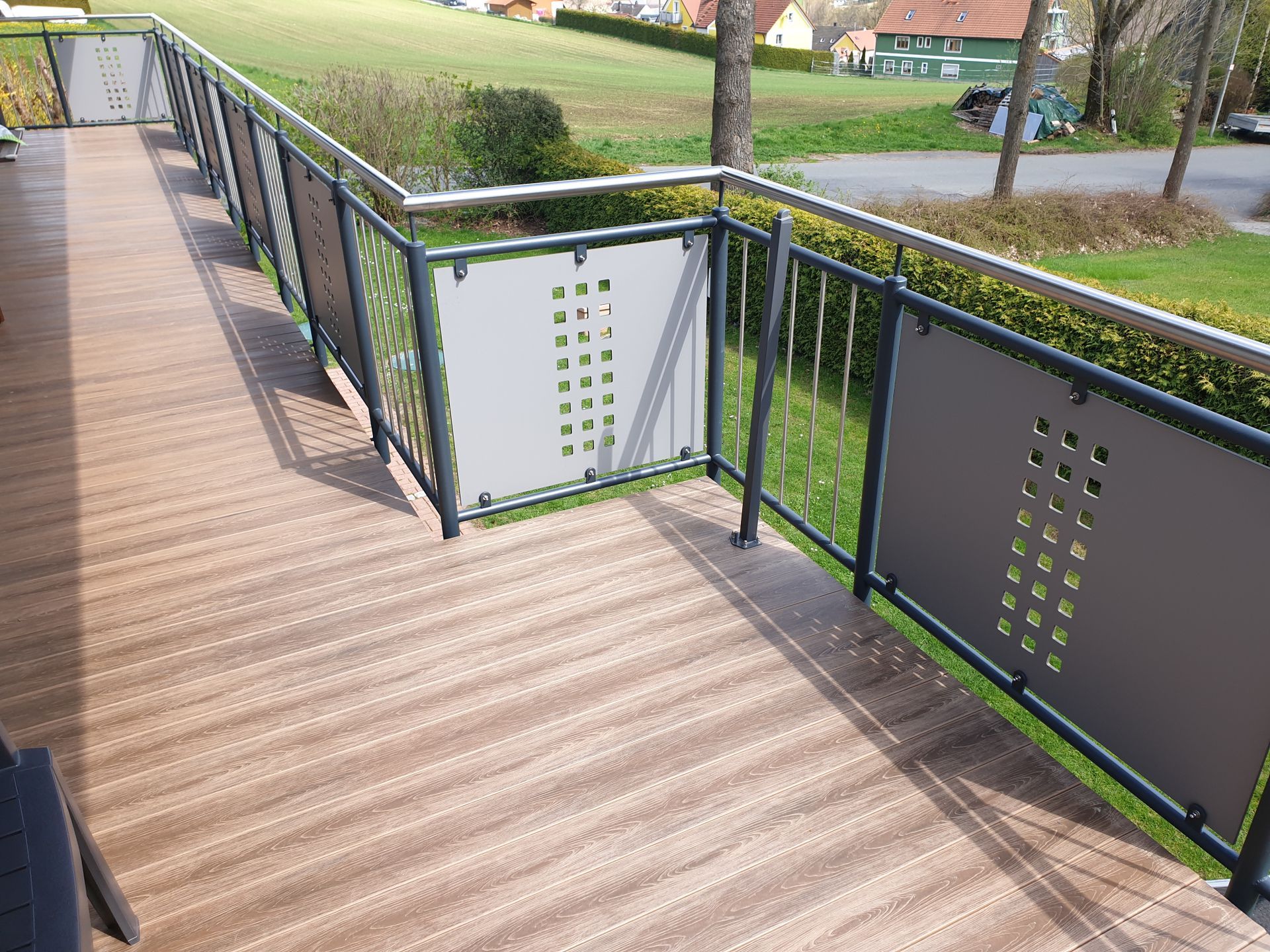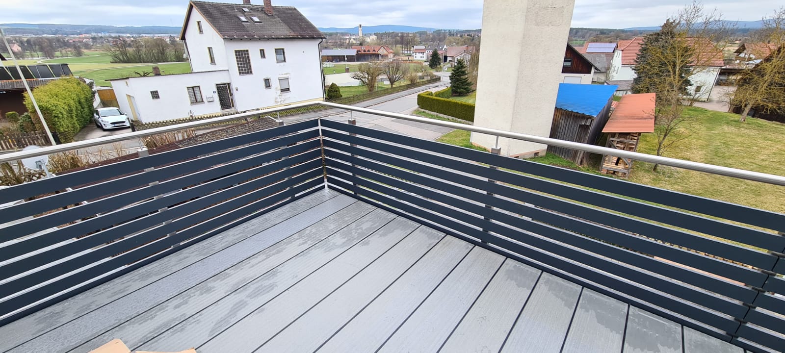 Als Balkonboden wurden hier WPC-Dielen mit bauaufsichtlicher Zulassung für den absturzgefährdeten Bereich verwendet.