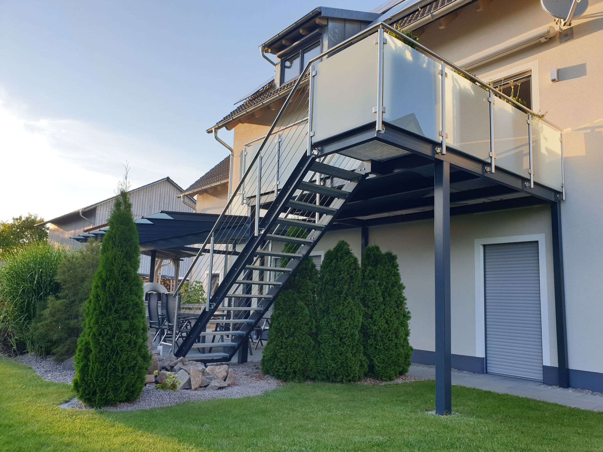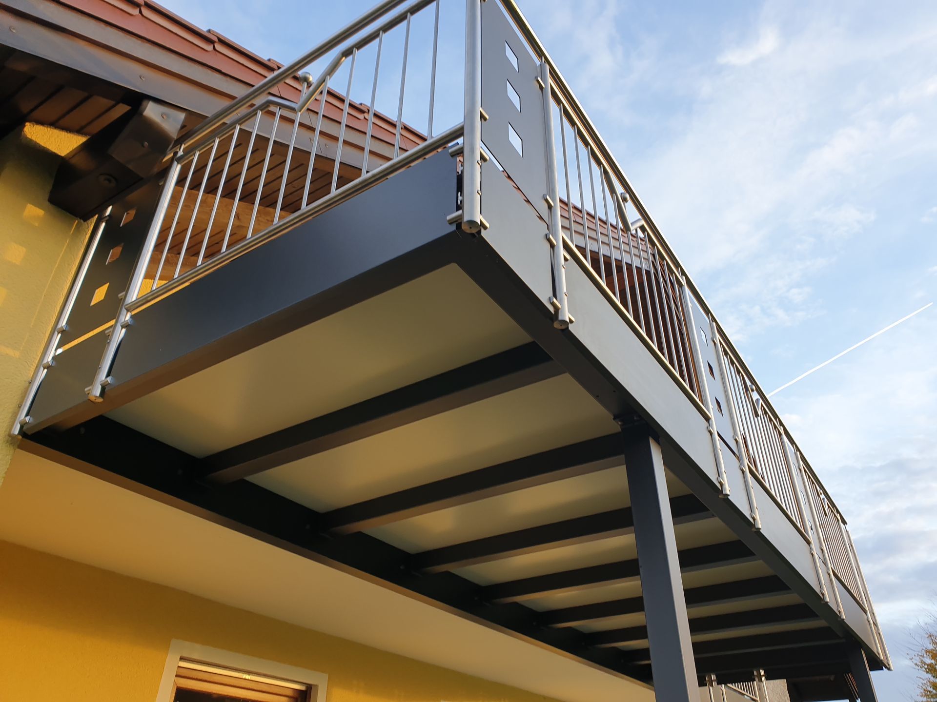 Wir planen, fertigen und montieren Balkonanlagen mit Überdachung, Stahltreppen und Balkongeländern in verschiedenen Ausführungen sowie Sonderanfertigungen nach Ihren individuellen Vorstellungen.