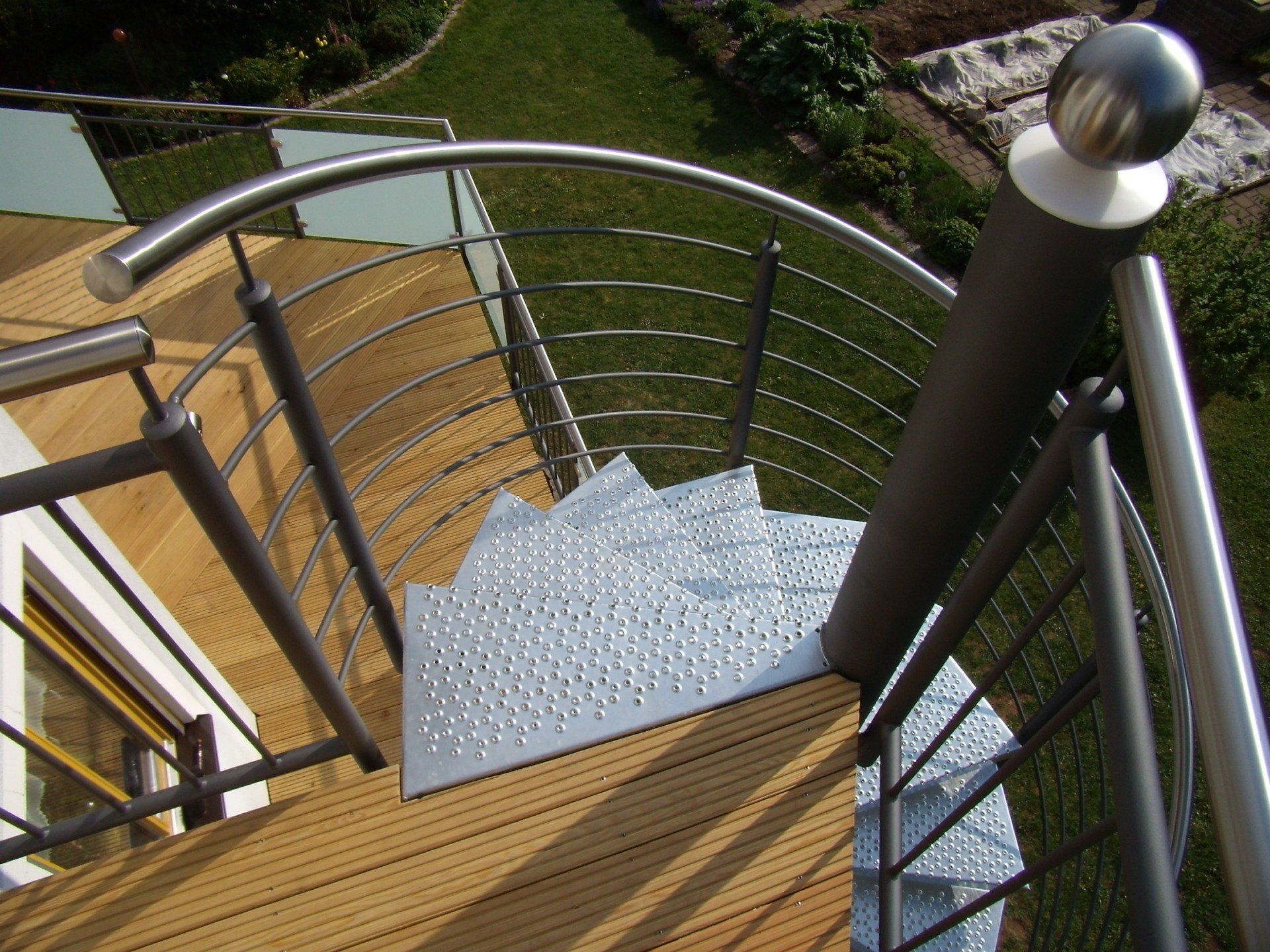 Zweistöckige Balkonkonstruktion mit Spindeltreppe und Überdachung