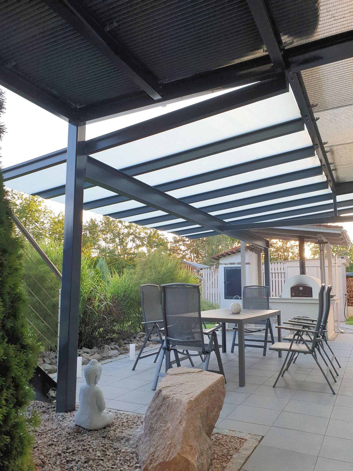 Egal ob Sie nur eine Überdachung brauchen oder komplett mit Schiebeverglasung oder nur einen einseitigen