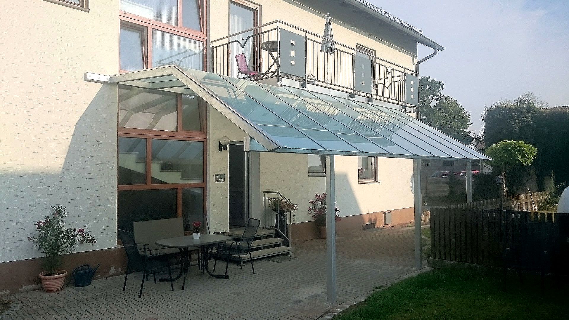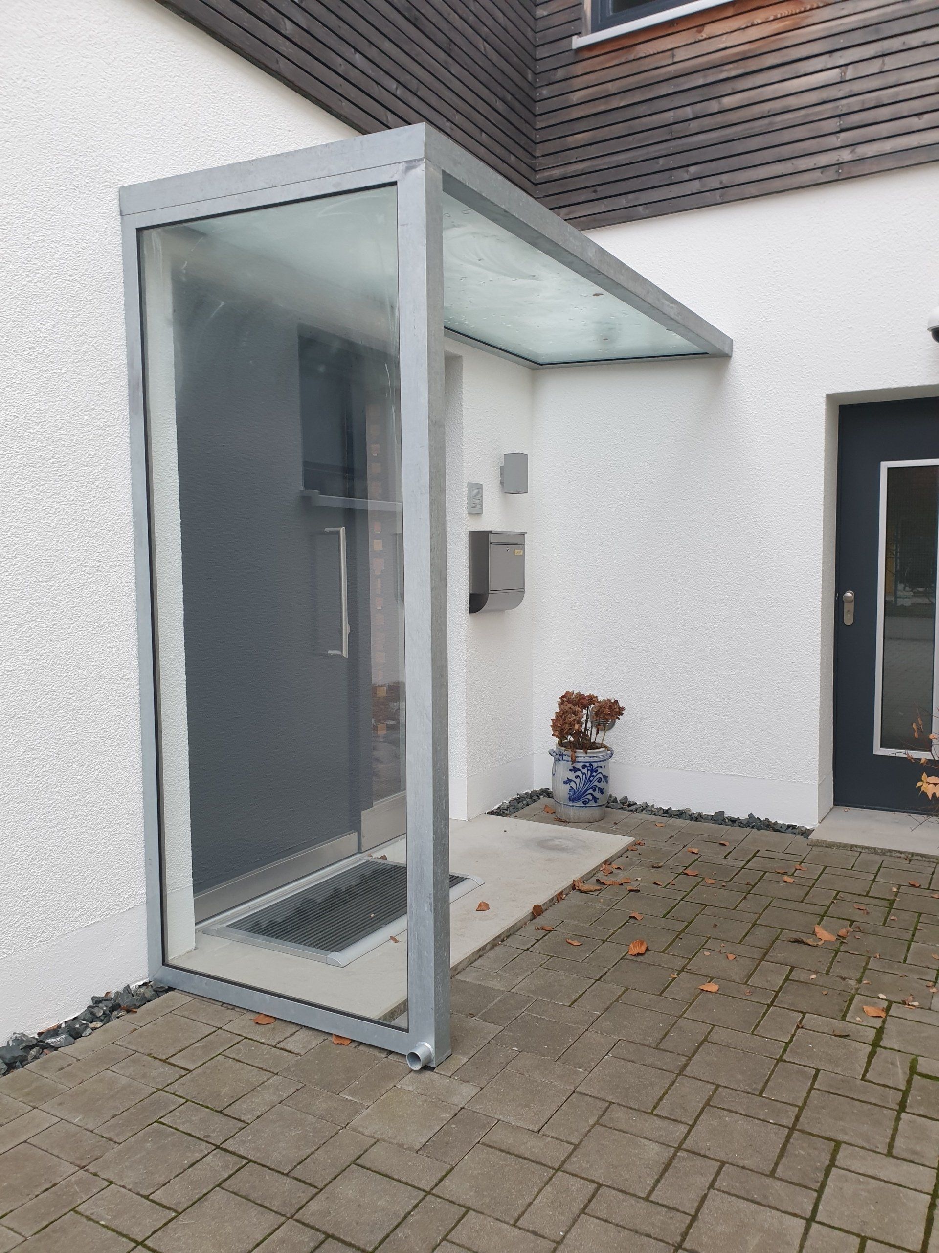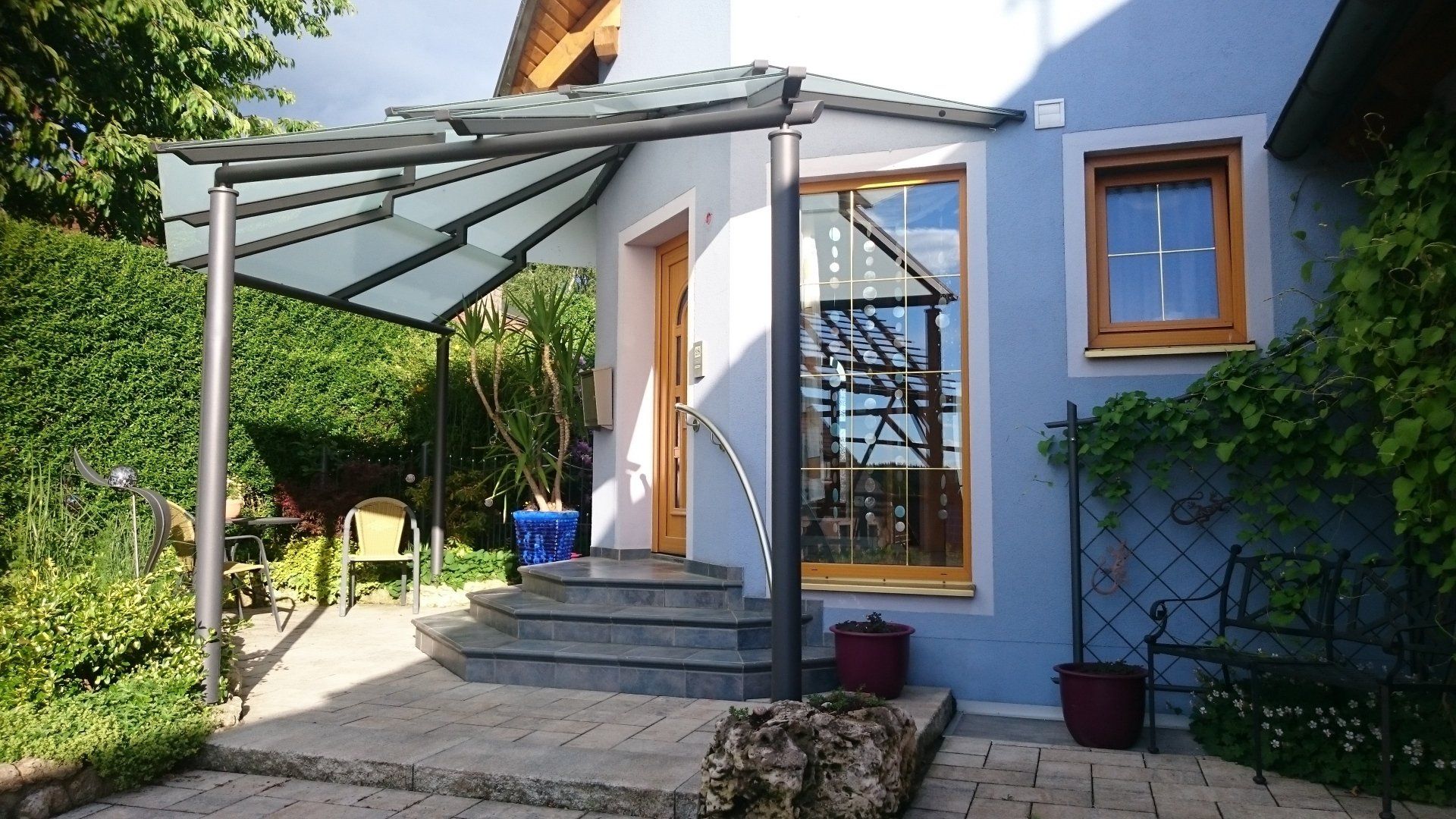Über Gestaltung und Materialauswahl ist bei einem Vordach vieles möglich, wir beraten Sie gerne.
